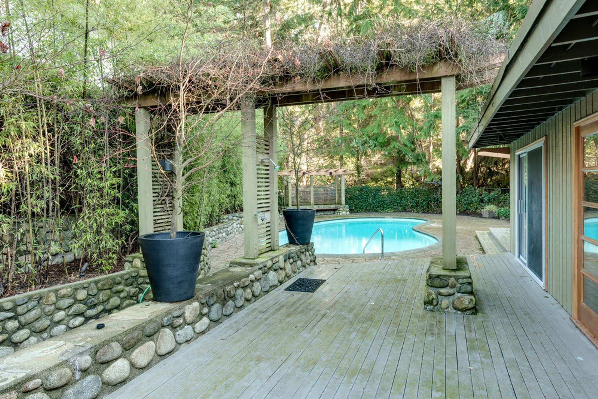 Incredible West Coast Century Modern home perfectly situated on a Natural inspired 10,000 square feet garden/creek private setting in the heart of Edgemont Village. Brand new kitchen and powder room ($100,000 update) while overall update completed in 2001. Great Open Concept with living,dining,family room and kitchen which opens up nicely with large sliding doors to the incredible pool setting. Come home every day to a spa infused like setting to relax, entertain and live life the way it's supposed to be lived. With 4 bedrooms and 3 bathrooms over 2900 sq.ft., the architectural designs of the past are leading the new home designs of today. Nice light with skylights and floor to ceiling windows are inspiring.