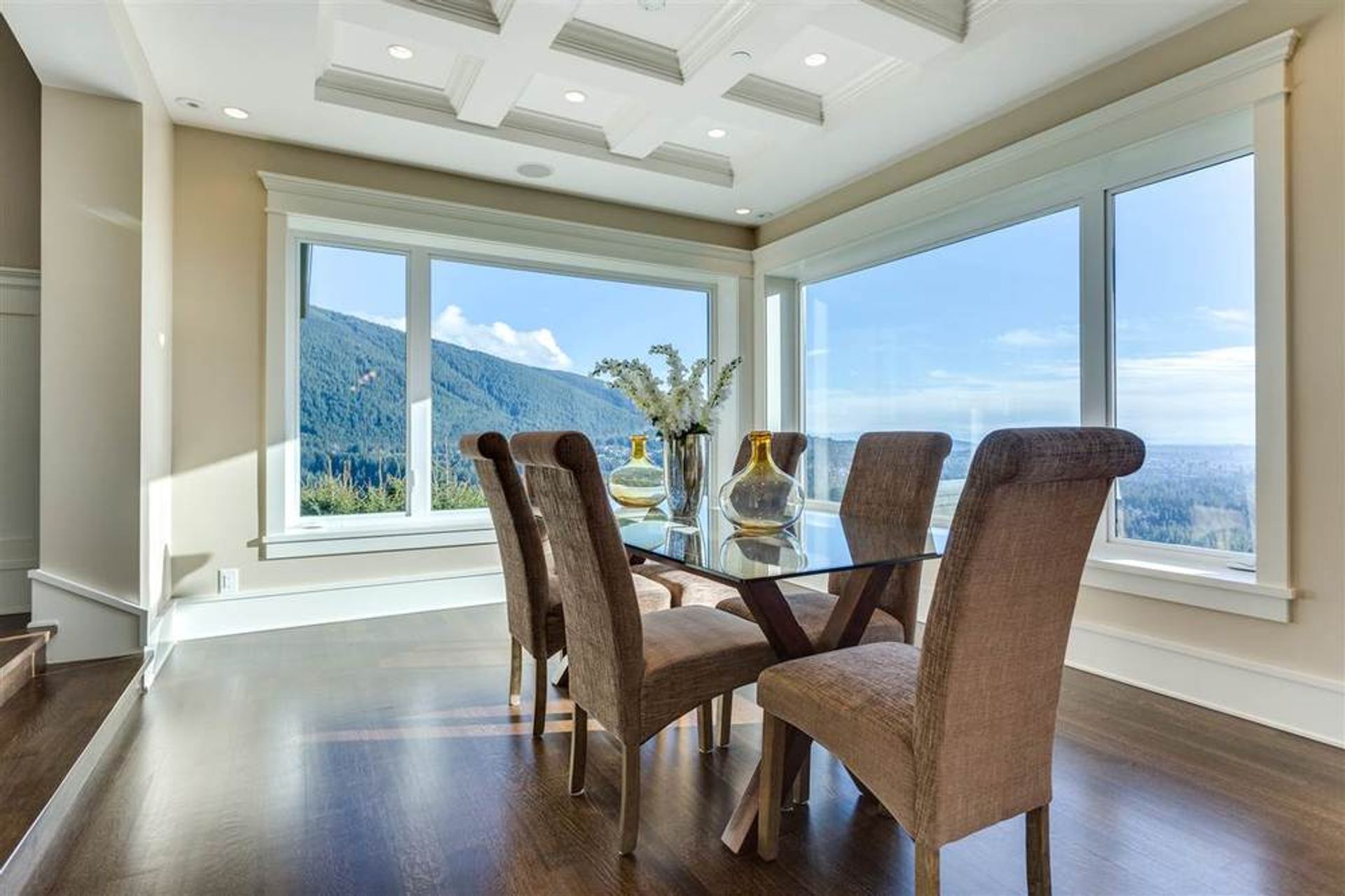 INCREDIBLE VIEW and an INCREDIBLE quality BUILD! This magnificent NEW home has the most INCREDIBLE view of Downtown Vancouver, Vancouver Harbour and Grouse Mountain. The build quality of this home is simply top of the line. Concrete and Concrete Frame, Copper Flashings, Timber Frame Accents, while incredibly insulated - LOCAL BUILDER! STUNNING VIEWS WITH A PRIVATE SETTING, Stunning Entrance with BIG VIEWS, Open Concept Kitchen with BIG VIEWS, LUXURIOUS feeling throughout. 5 bedrooms, Office, Den, Great Outside Covered Area for looking at the CITY and the EAGLES, 4" White Oak Hardwood Floors, Air Conditioning, Multi-Zone Hot Water Heat, Radiant Heated Floors and VIEWS, VIEWS, VIEWS.