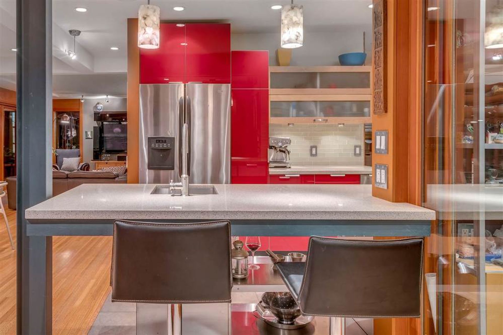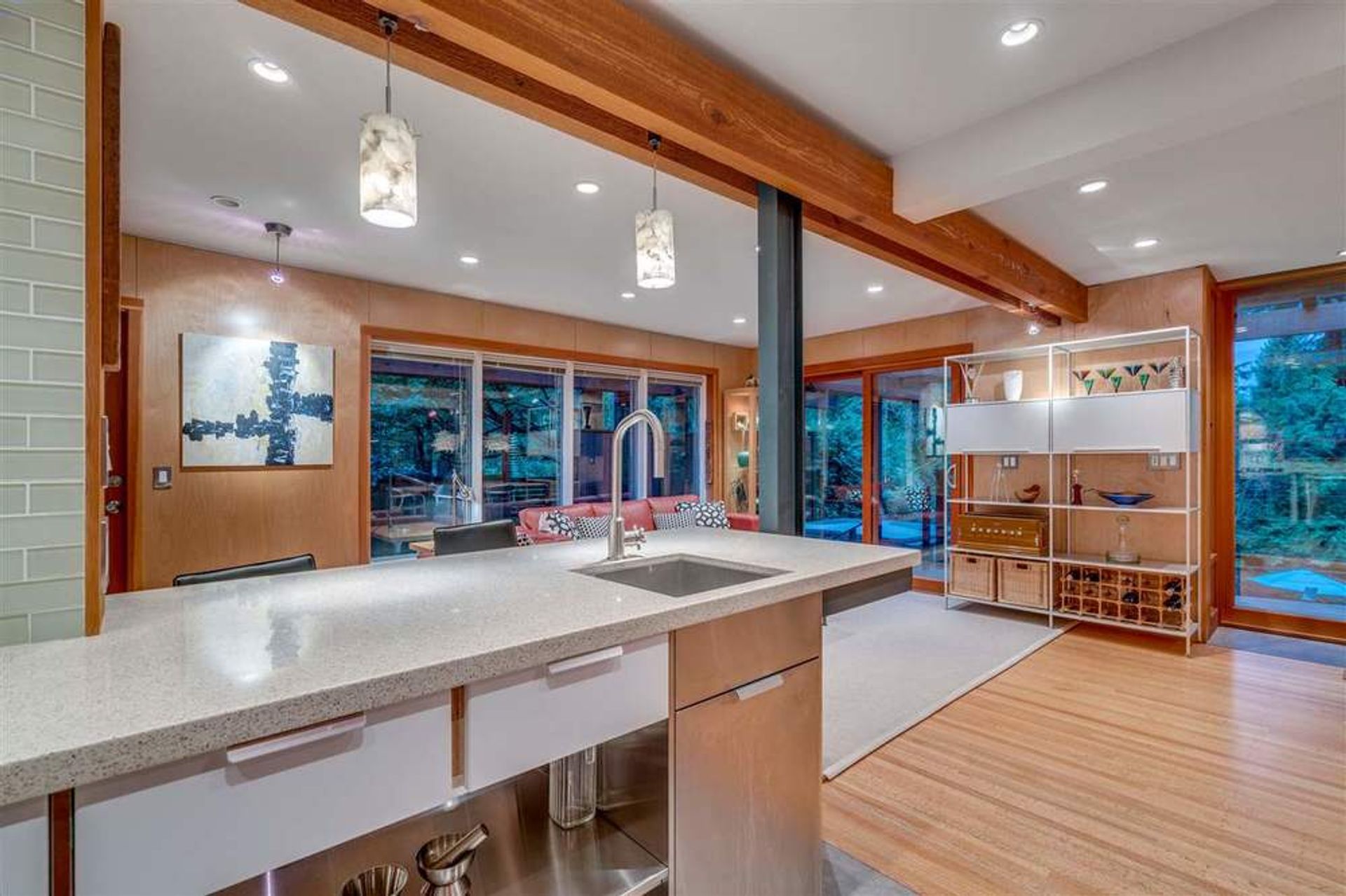 Welcome to the Coleman Home on Emerald, a delightful modernist home that exudes craftsmanship from Barry Griblin, renowned designer of West Coast architecture.This custom renovation features everything needed for a young family who appreciates West Coast Modern, and the specially built room for a music producer is just the start.The house nestles into its setting:from a U shaped entry court, through free-flowing living spaces, to layered, glass covered trellises and decks leading to the landscaped rear yard.To call Emerald Drive one of the most desirable streets in Edgemont is an understatement-minutes walk to the Village, and minutes drive to the freeway and local schools.The home has one of the grandest backyard gardens of North Vancouver-Need backyard space for the kids-look no further.